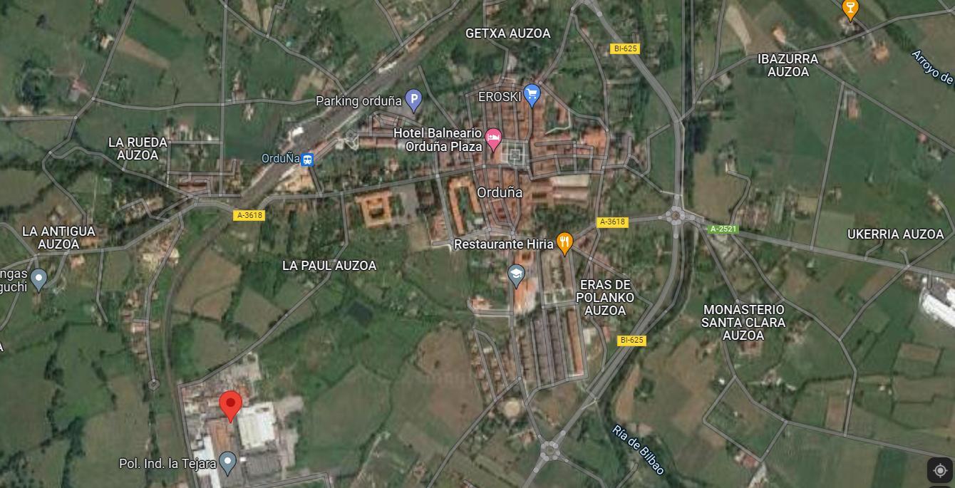 Nave Industrial situada en la localidad de Urduña. Cuenta con una superficie de 20.087 m² distribuido en varios pabellones y con amplio terreno libre. La edificación se encuentra en un estado muy deteriorado. Ubicado en el Polígono Industrial de la Tejara, próximo al centro urbano del municipio.